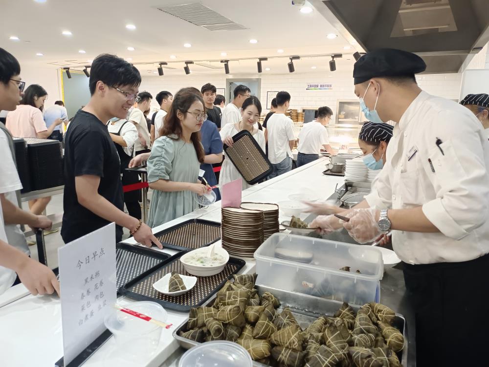 气象局食堂的《民意小册子》上有不少客户提出,想体验一把自己动手手包粽子。于是,6月10日,一场别开生面的粽子小课堂在气象局食堂开讲了!服务中心团队为气象局的员工们准备了粽子原材料,由点心师傅手把手传授如何填糯米、如何扎粽绳、如何裹粽叶……活动让端午的传统习俗得以传承,欢声笑语中也增进了友谊。