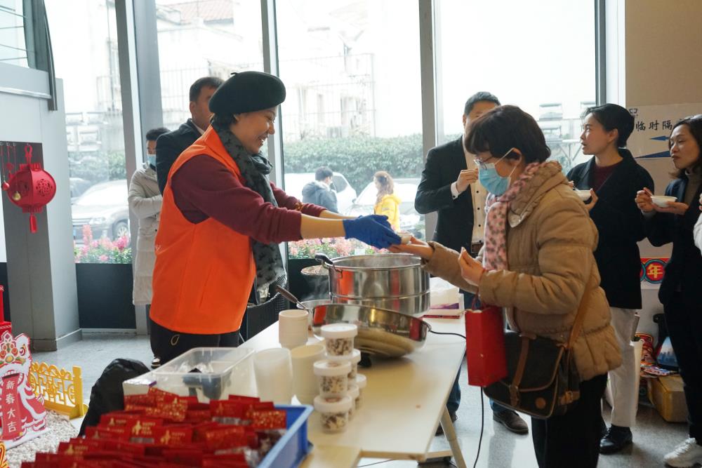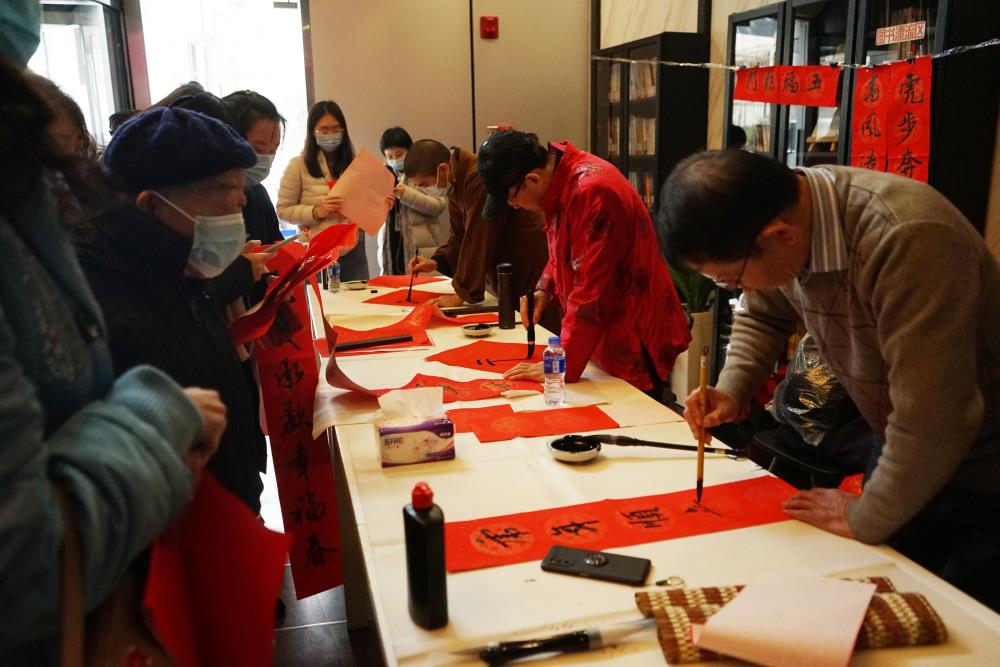 1月10日,静安区总工会、静安寺街道党工委、街道办事处与中企物业协办的“同心携手·温暖U你”活动,利用白领们午间休息的时间,在静安中华大厦大堂举办。“盛世称心欢乐多,虎年顺意安康久”“春风浩荡展宏图,虎步奔腾开盛景”……活动邀请到了书法协会的老书法家以及静安区圆明讲堂的法师现场为大家挥洒笔墨书写春联,还为进出的客户奉上热气腾腾的腊八粥。两新党群工作者和楼宇内的业户积极参与,一时间整个静中大厦人头攒动、欢声笑语,好不热闹。