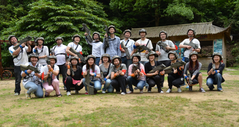 活动的第一站是杭州白龙潭景区拓展培训基地。首先是射击对抗赛,在严镔贤副总经理的指挥下,大家在“战场”上玩起了攻坚与反谍战,队员们披荆斩棘、冲锋陷阵、击垮敌阵,充分显示了青年的朝气、活力和阳光四射!