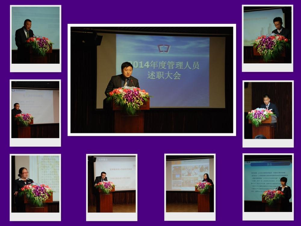 12月19日上午,公司2014年度管理人员述职测评大会假座静安寺街道社区文化活动中心会议室举行。各部、室、服务中心、直属企业、分公司主管级以上管理人员计143人出席。
