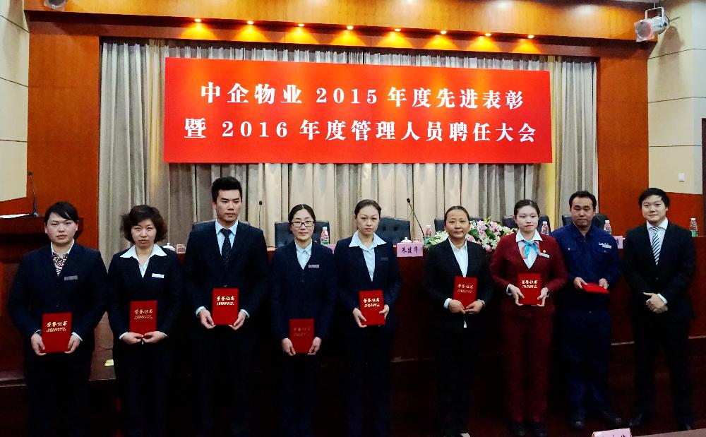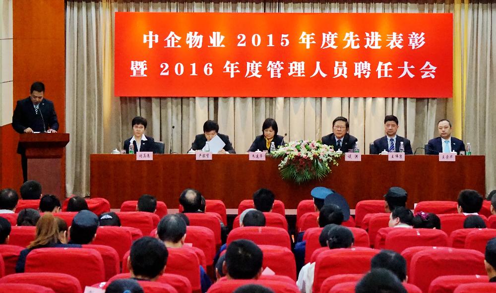 2016年1月5日下午1:30中企物业2015年先进表彰大会暨2016年管理人员聘任大会在上海旅游培训中心会议厅隆重举行,来自各服务中心的158名先进个人、4个先进集体代表以及公司主管以上管理人员出席了大会,会场济济一堂,洋溢着喜庆、祥和、欢乐的气氛。