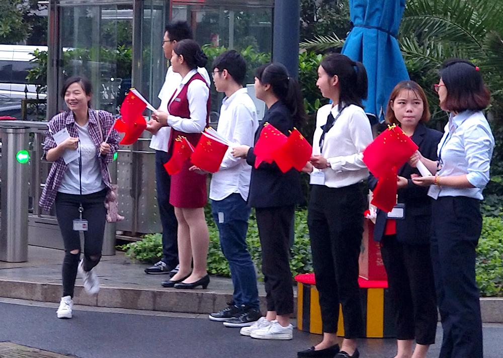 2017国庆节前一天的早晨,快乐中国、快乐728、快乐你我为主题的“喜迎十九大、快乐迎国庆”活动在中企物业核工院服务中心开展,由服务中心精心准备的一面面鲜艳小红旗,发送给核工院每一位职工,共同欢庆祖国母亲的生日。
