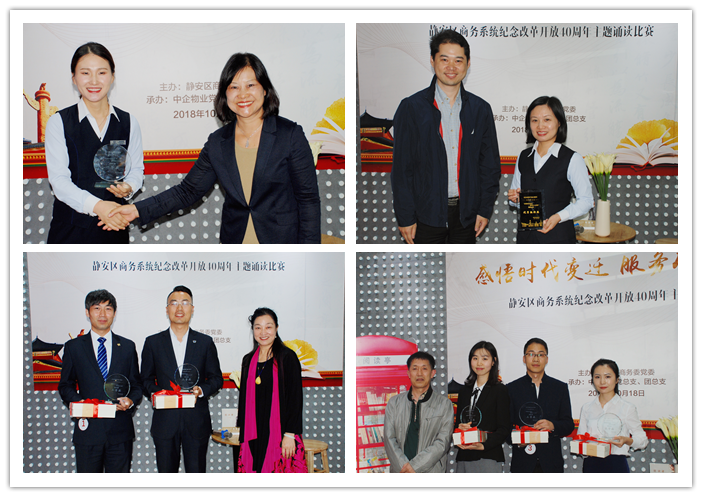 这场富有时代文艺气息的活动历时两个月的筹备组织,静安区商务委直属“两新”企业、区域化党建成员单位通过初赛和复赛,共派出6名选手进入决赛,角逐出一等奖1名、二等奖2名、三等奖3名、优胜奖8名,其中6名来自中企物业,并包揽一等奖和二等奖。选手们身临其境地感受文章创作背景,把他们的故事融入诵读作品,向观众朋友们将改革开放四十周年历程中的人文情怀娓娓道来。