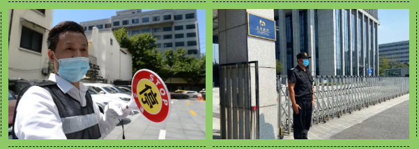 无论是东方日出还是傍晚夕阳,大楼门口保安的身影总是那么挺拔,在热浪里有秩序地引导来往客户和进出车辆。
