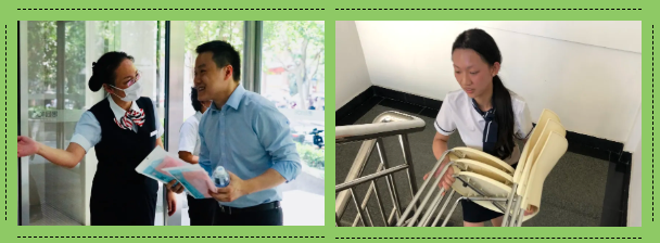 上班时迎面一声朝气蓬勃的问候,祝客户开启活力满满的每一天,彬彬有礼的笑容扫去了酷暑之下的一丝闷热感。